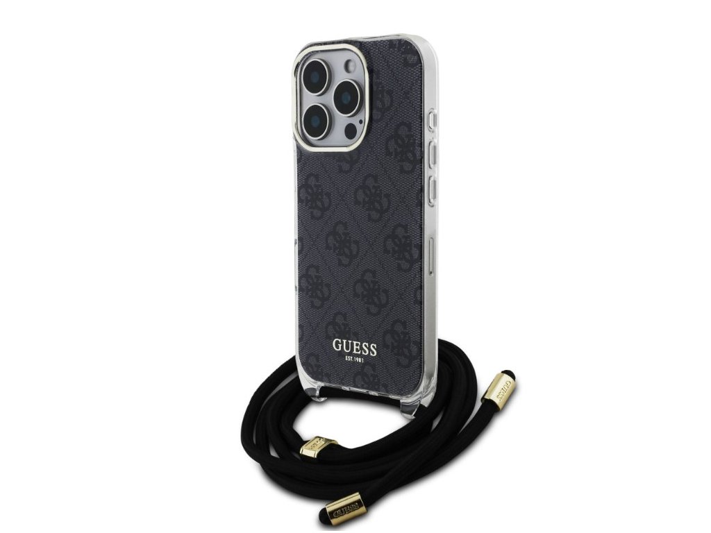 Guess IML 4G Printed Crossbody Popruh Zadní Kryt pro iPhone 16 Pro Black