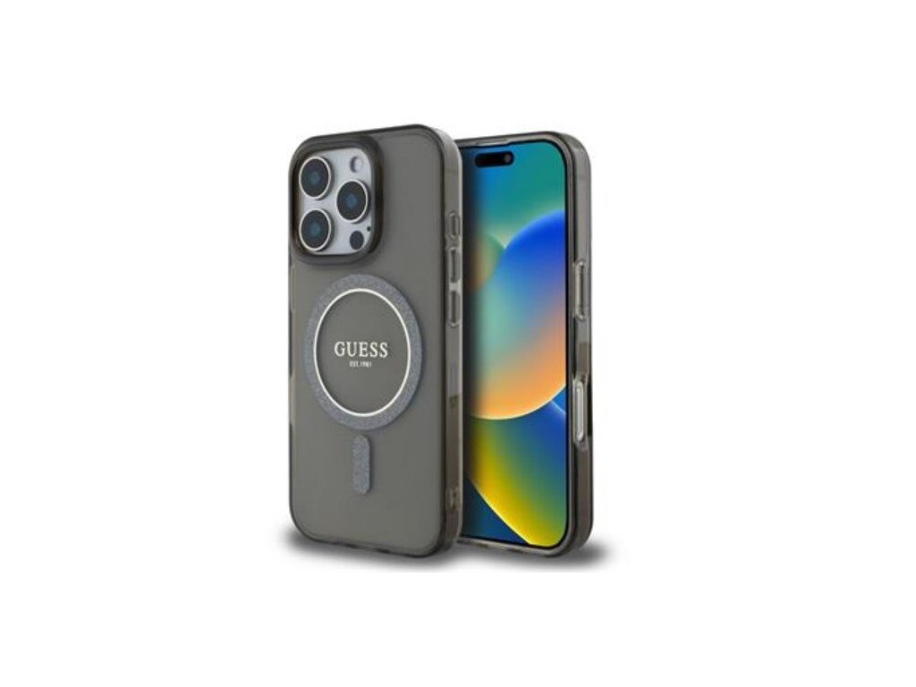 Guess IML Glitter Ring MagSafe Zadní Kryt pro iPhone 16 Pro Black