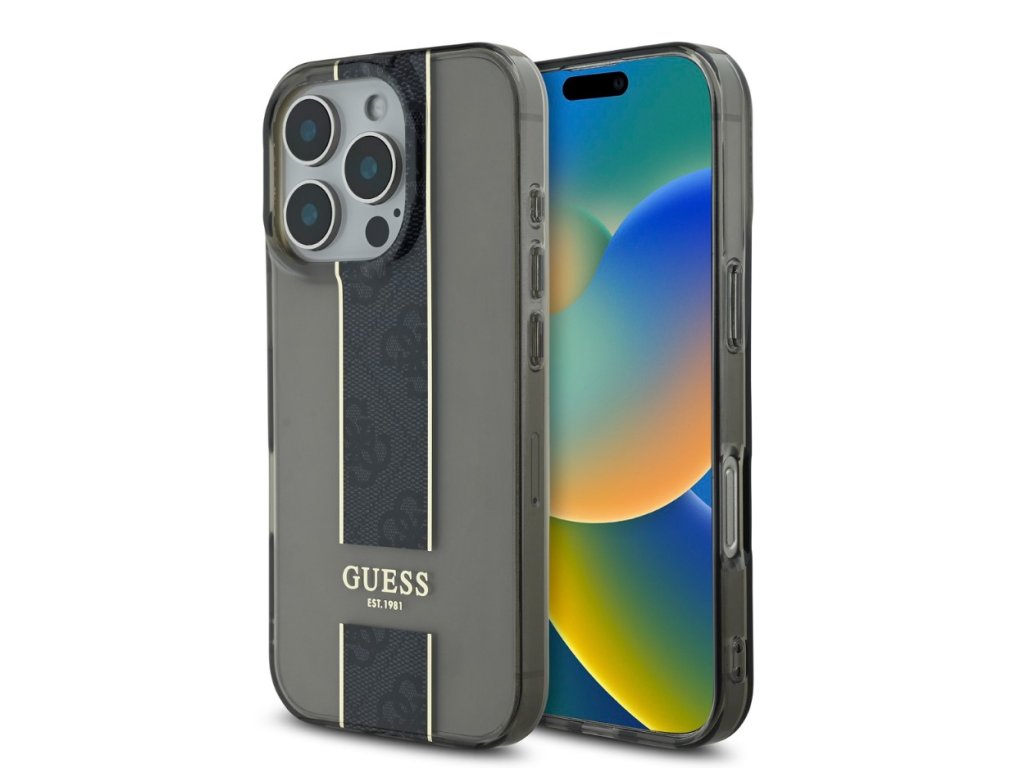 Guess IML Middle 4G Stripe Zadní Kryt pro iPhone 16 Pro Black