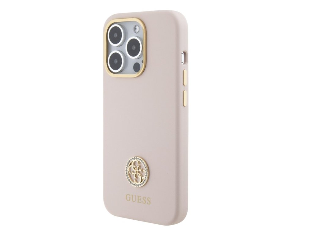 Guess Liquid Silicone 4G Strass Metal Logo Zadní Kryt pro iPhone 15 Pro Růžový