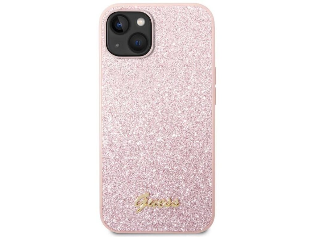 Guess PC/TPU Glitter Flakes Metal Logo Zadní Kryt pro iPhone 14 Plus Pink