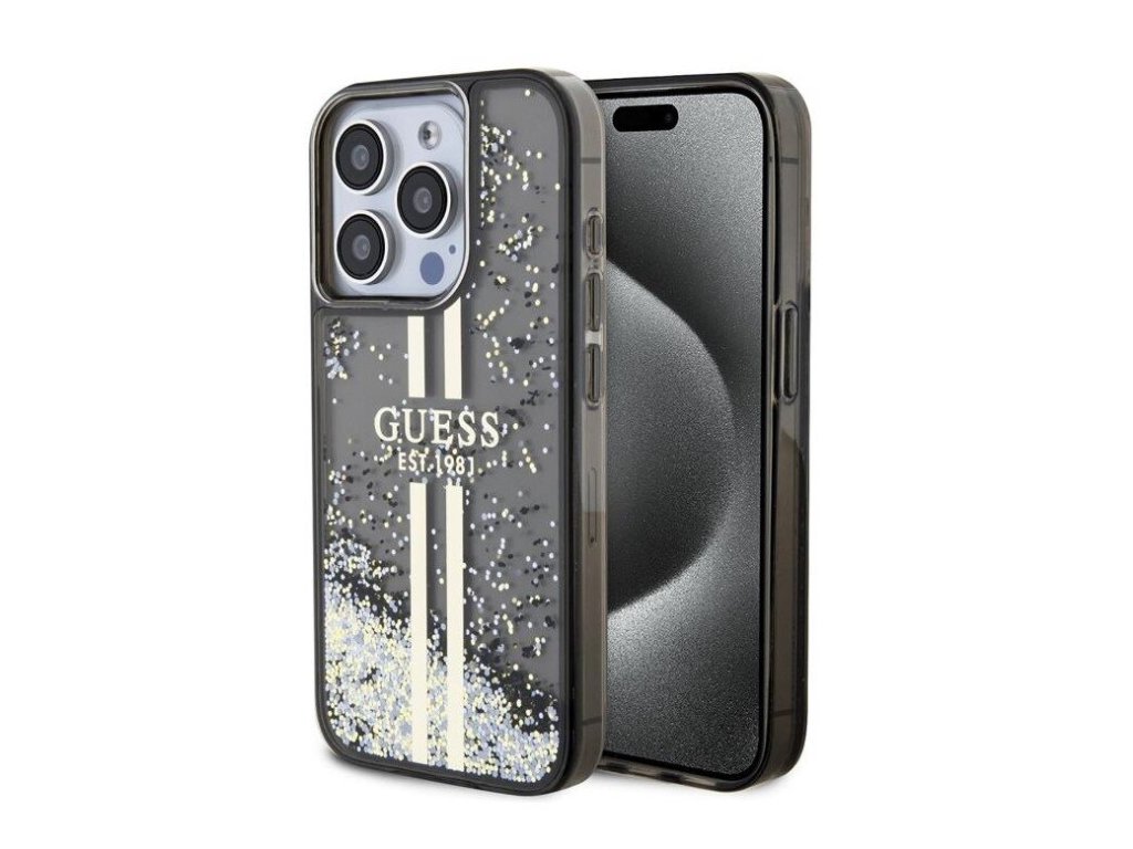 Guess PC/TPU Liquid Glitter Gold Stripe Zadní Kryt pro iPhone 15 Pro Max Black