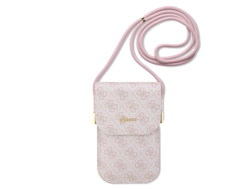 Guess PU 4G Metal Logo Script Phone Bag Pink