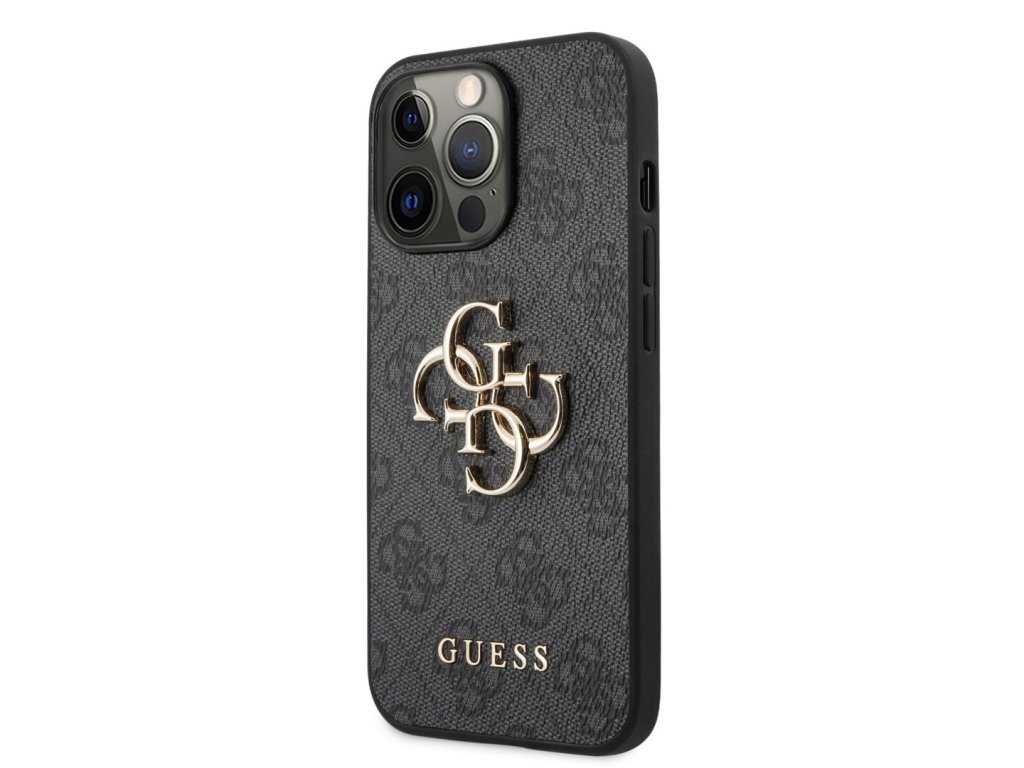 Guess PU 4G Metal Logo Zadní Kryt pro iPhone 13 Pro Max Grey