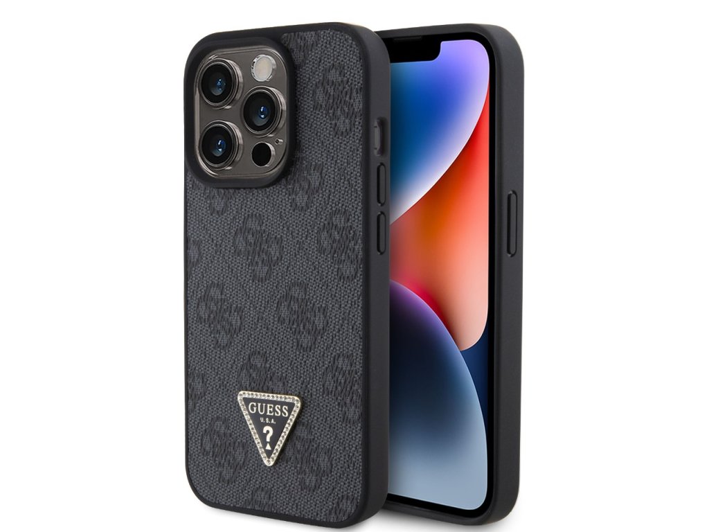 Guess PU 4G Strass Triangle Metal Logo Zadní Kryt pro iPhone 15 Pro Black