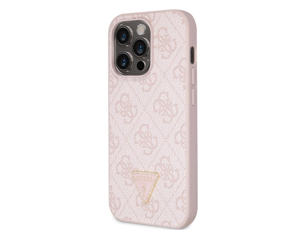 Guess PU 4G Strass Triangle Metal Logo Zadní Kryt pro iPhone 15 Pro Růžový