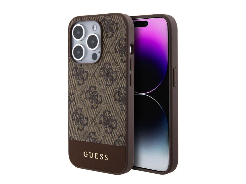 Guess PU 4G Stripe MagSafe Zadní Kryt pro iPhone 15 Pro Brown