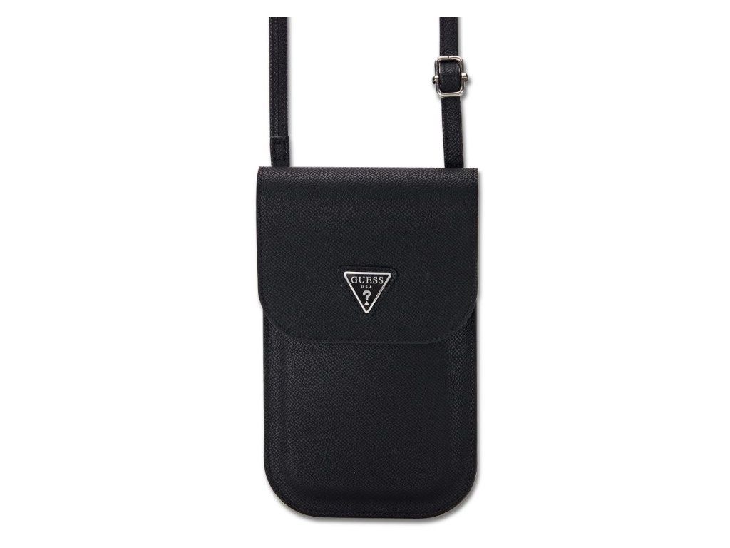 Guess PU Grained Triangle Logo Taška na Telefon Black