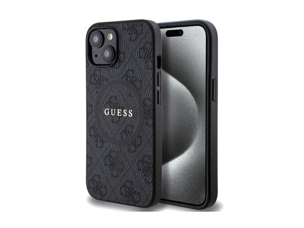 Guess PU Leather 4G Colored Ring MagSafe Zadní Kryt pro iPhone 15 Black