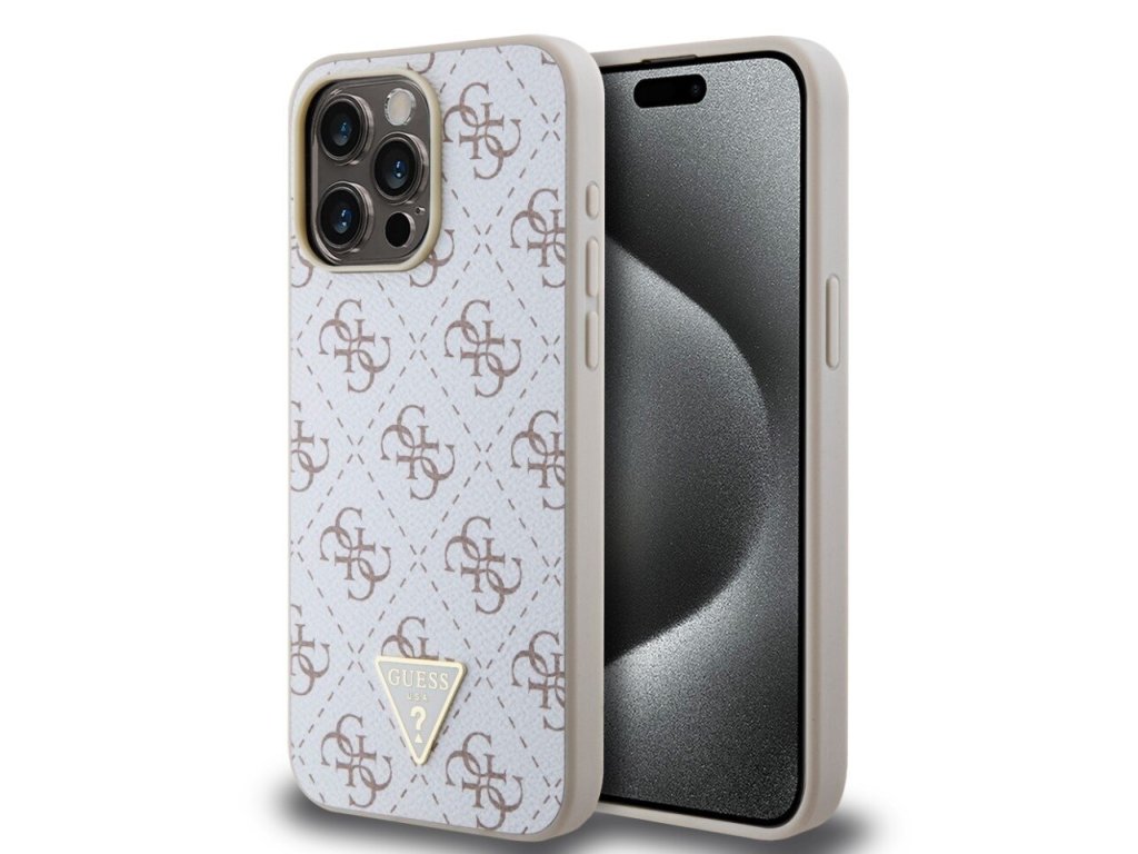 Guess PU Leather 4G Triangle Metal Logo Zadní Kryt pro iPhone 15 Pro Max White