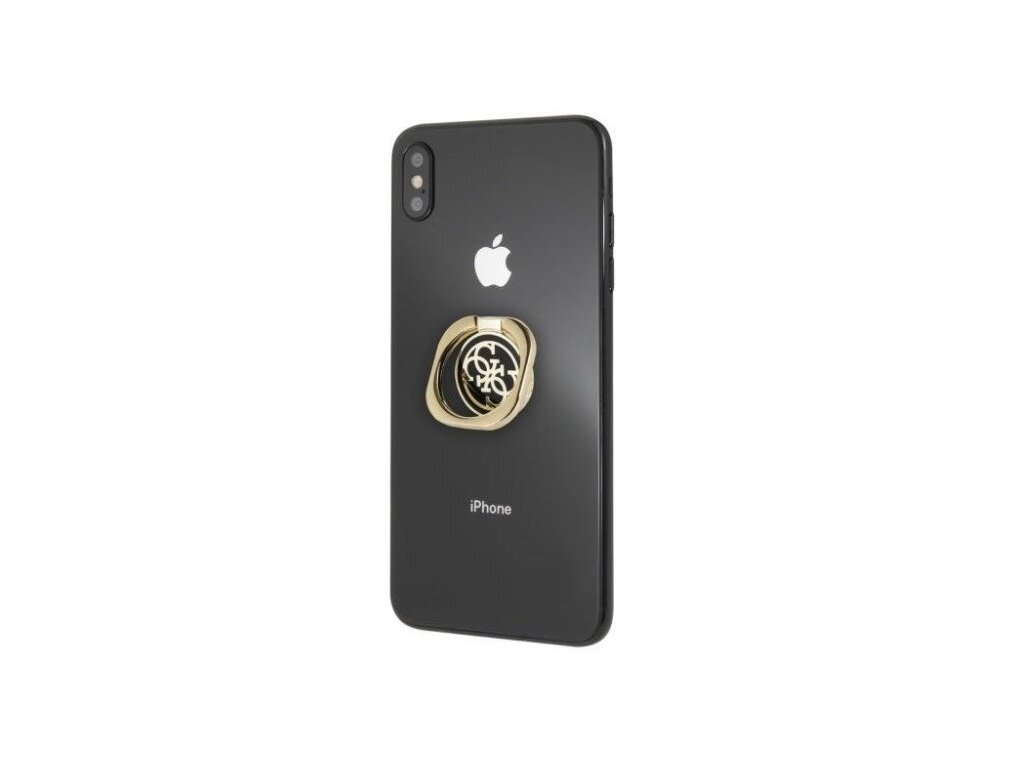 Kovový praktický stojánek ve tvaru prstenuGuess 4G, který se upevňuje na zadní stranu pouzdra. Stylový a praktický doplněk pro telefon, který zajišťuje bezpečnější držení zařízení v jedné ruce a minimalizuje riziko vyklouznutí telefonu.