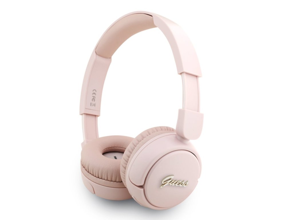 Guess Script Metal Logo Bezdrátová Sluchátka – růžová