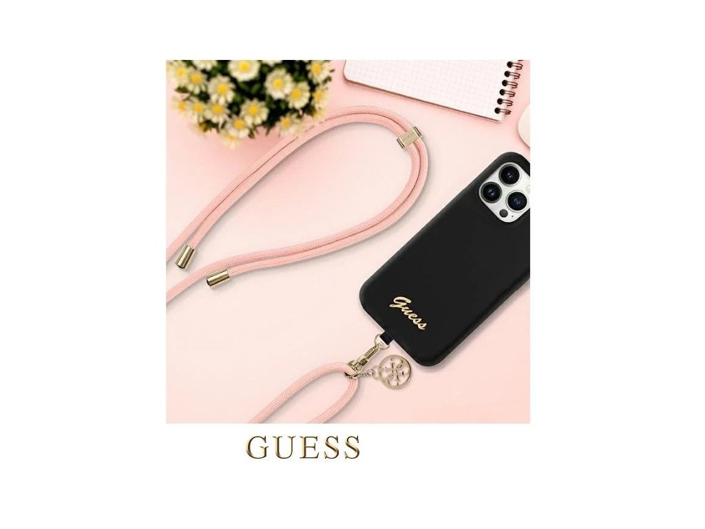 Pásek Guess CBDY Cord se velmi snadno instaluje – stačí mezi ochranné pouzdro a smartphone vložit speciální vložku s háčkem. Konec adaptéru s karabinou prochází otvorem nabíjecího portu a neruší jeho funkčnost a je plně kompatibilní s bezdrátovým nabíjením. Karabina připevněná k adaptéru umožňuje rychlé odpojení popruhu od telefonu.