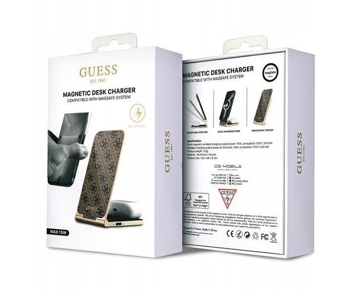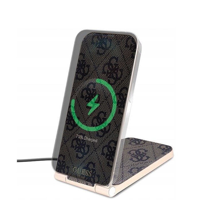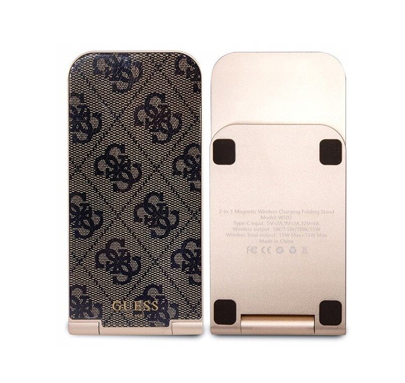 Guess 4G Pattern Stolní Bezdrátová Magnetická Nabíječka 2v1 Brown