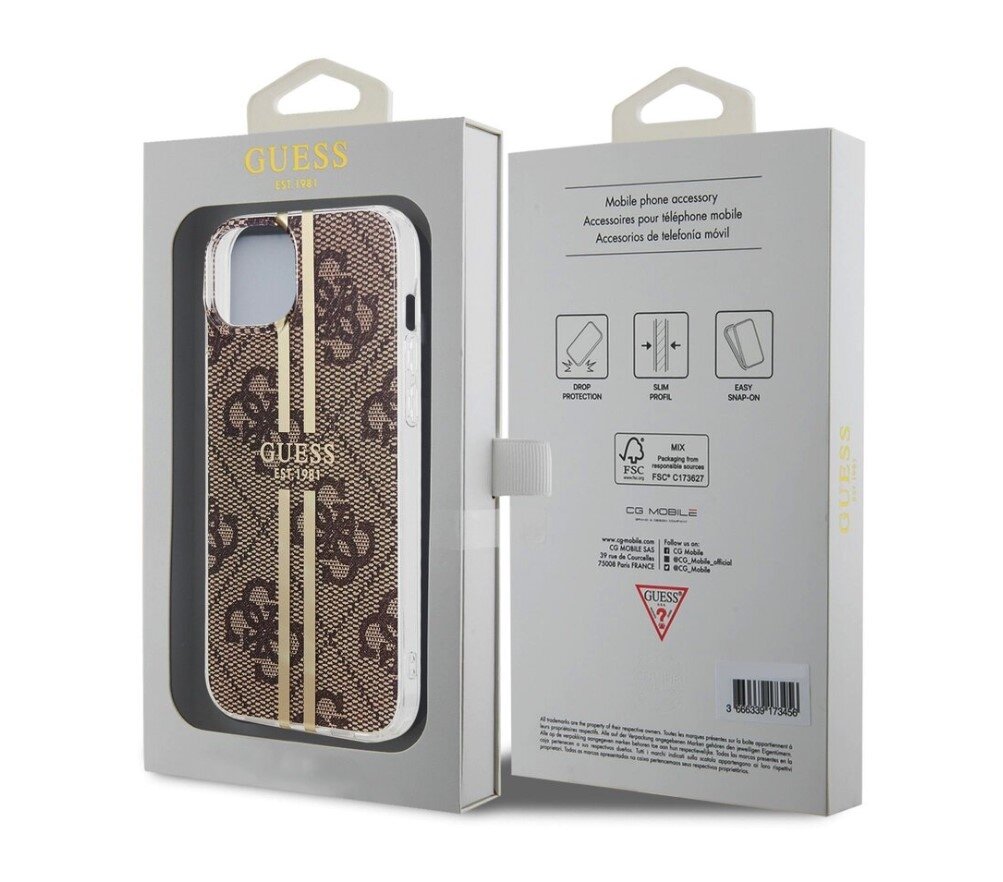 Guess IML 4G Gold Stripe Zadní Kryt pro iPhone 15 Brown