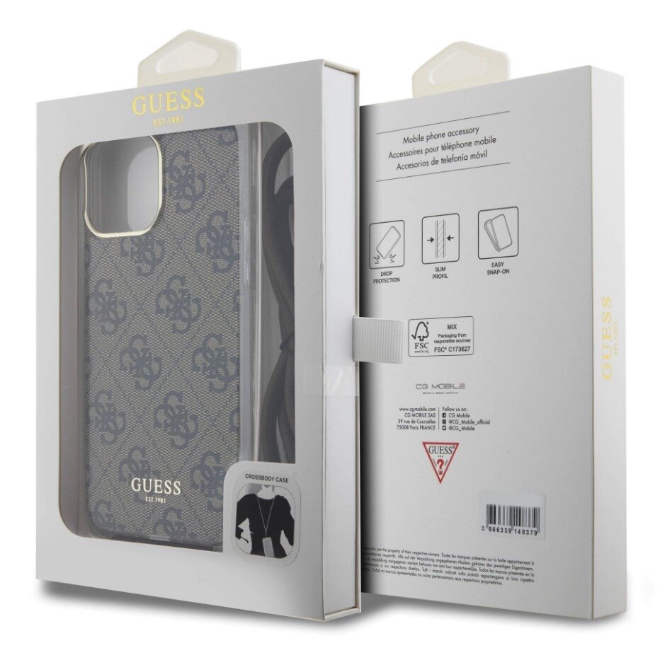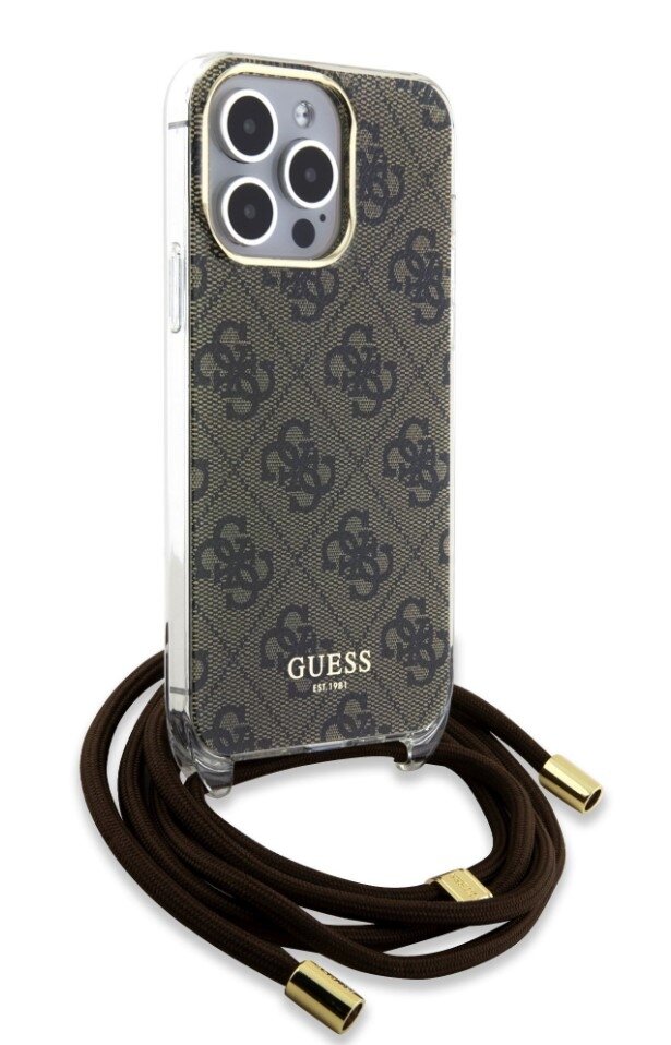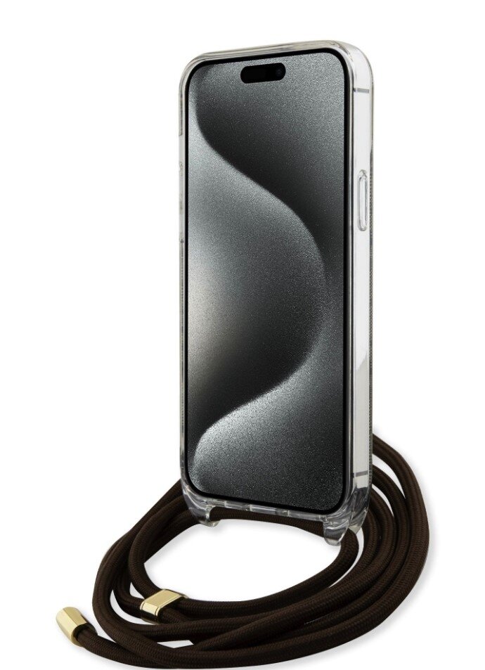 Guess IML 4G Printed Crossbody Popruh Zadní Kryt pro iPhone 15 Pro Brown