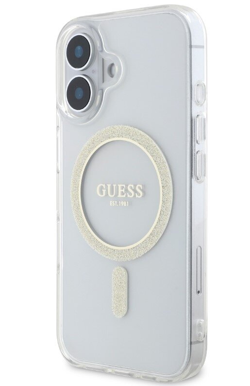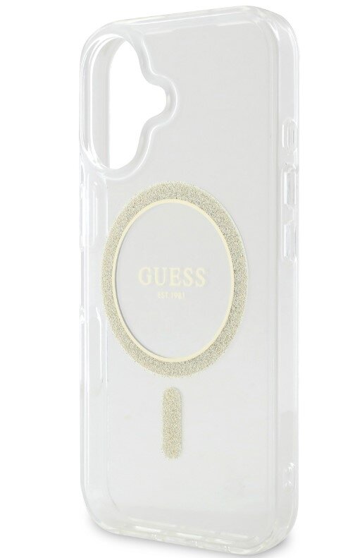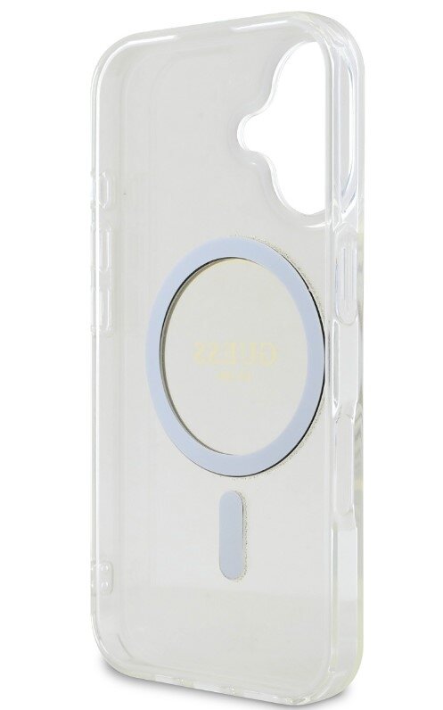 Guess IML Glitter Ring MagSafe Zadní Kryt pro iPhone 16 Plus Transparent