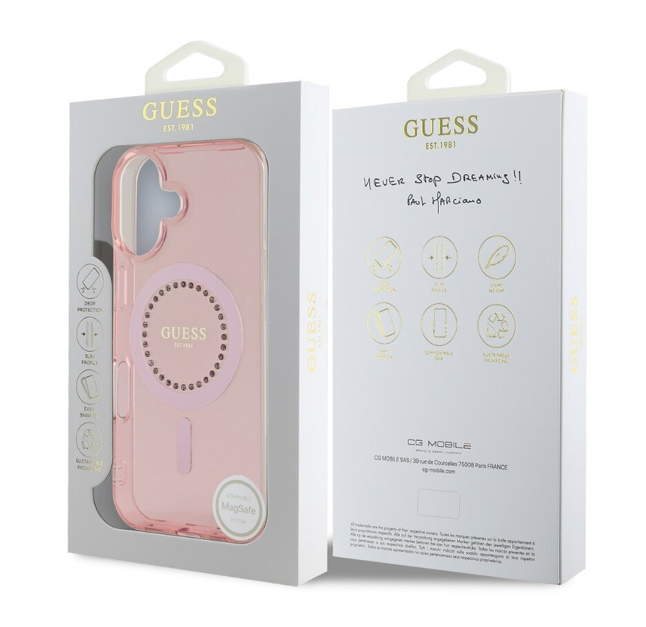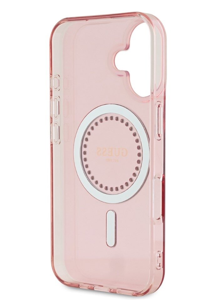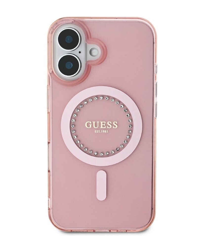 Guess IML Rhinestones Ring MagSafe Zadní Kryt pro iPhone 16 Pink
