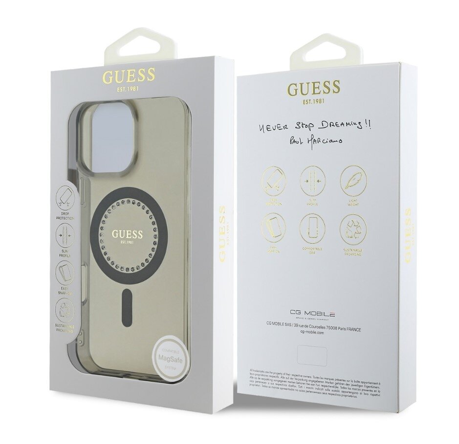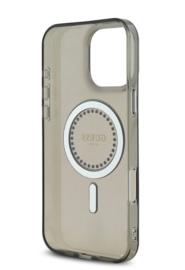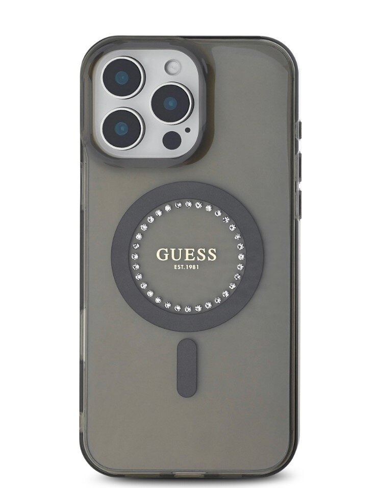 Guess IML Rhinestones Ring MagSafe Zadní Kryt pro iPhone 16 Pro Black