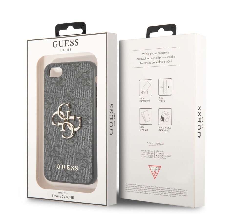 Guess PU 4G Metal Logo Zadní Kryt pro iPhone 7/8/SE2020/SE2022, šedá
