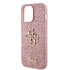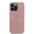 Guess PU Fixed Glitter 4G Metal Logo Zadní Kryt pro iPhone 15 Pro Max Růžový