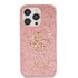 Guess PU Fixed Glitter 4G Metal Logo Zadní Kryt pro iPhone 15 Pro Růžový