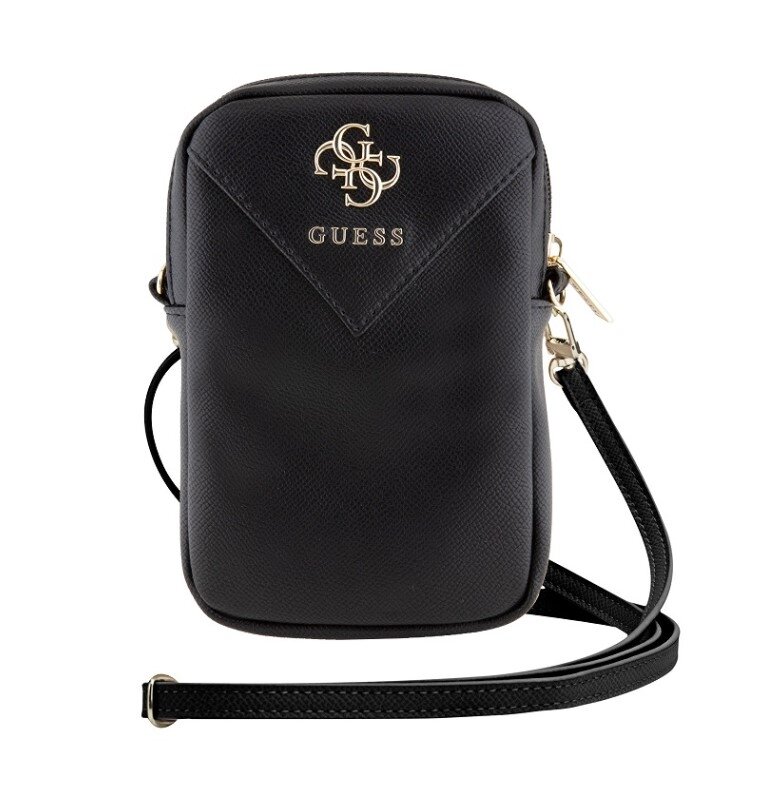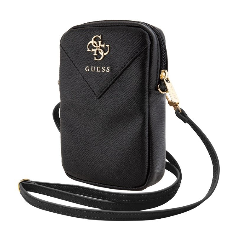 Guess PU Grained 4G Metal Logo Wallet Phone Bag Zipper, černá