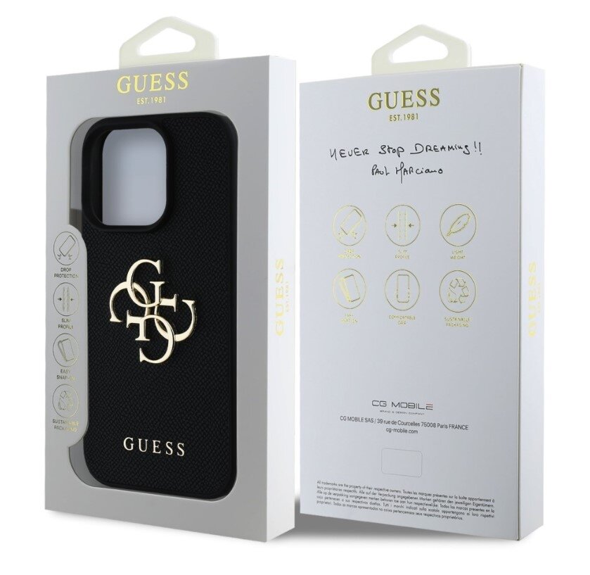 Guess PU Grained 4G Metal Logo Zadní Kryt pro iPhone 16 Pro Černá