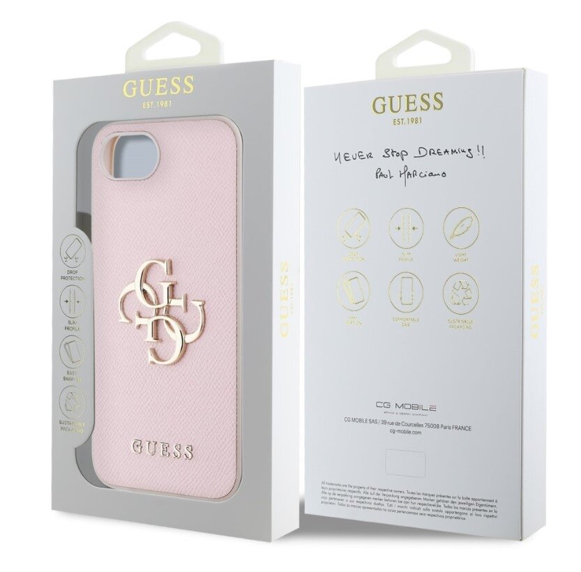 Guess PU Grained 4G Metal Logo Zadní Kryt pro iPhone 16e Růžová
