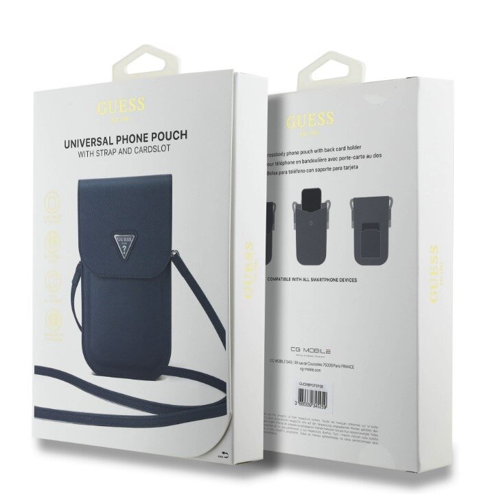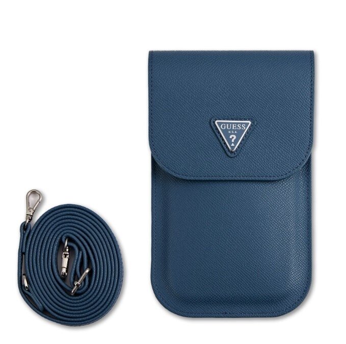 Guess PU Grained Triangle Logo Taška na Telefon Blue