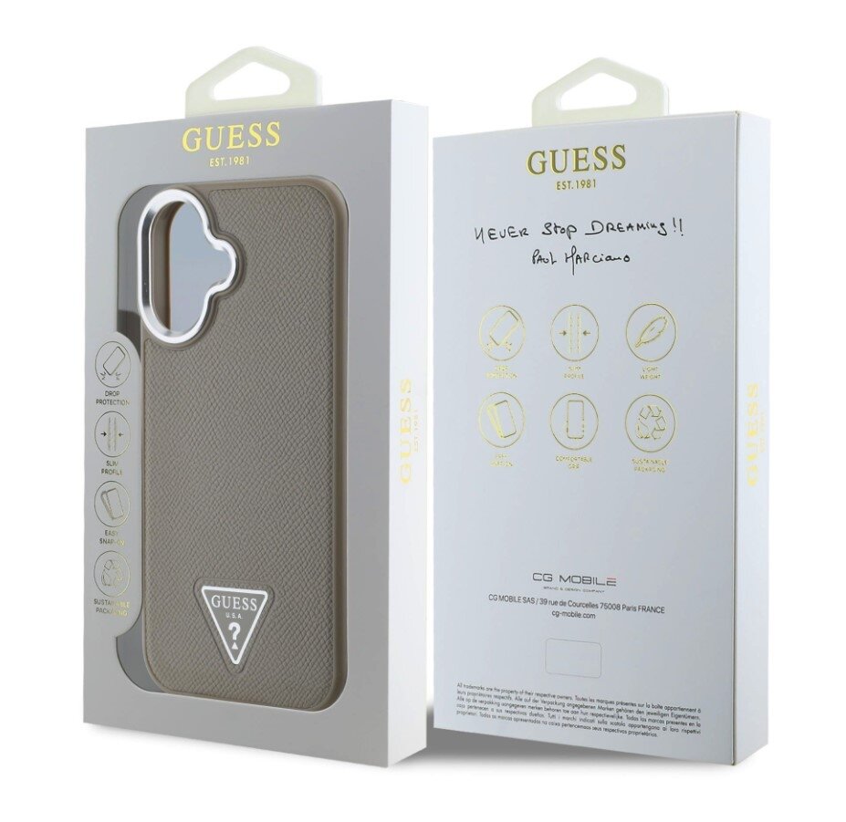 Guess PU Grained Triangle Logo Zadní Kryt pro iPhone 16 Brown