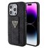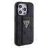 Guess PU Grip Stand 4G Strass Triangle Metal Logo Zadní Kryt pro iPhone 15 Pro Black