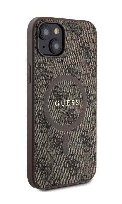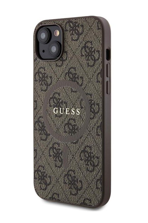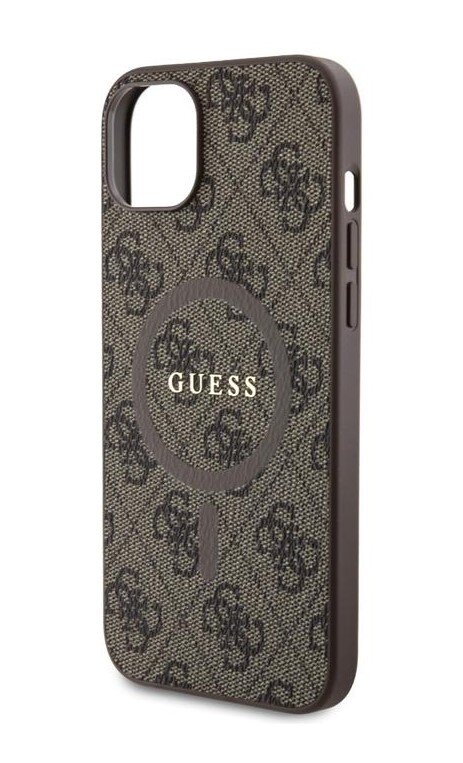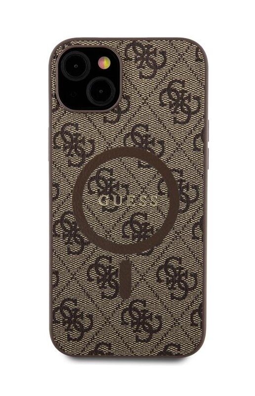 Guess PU Leather 4G Colored Ring MagSafe Zadní Kryt pro iPhone 15 Plus Brown