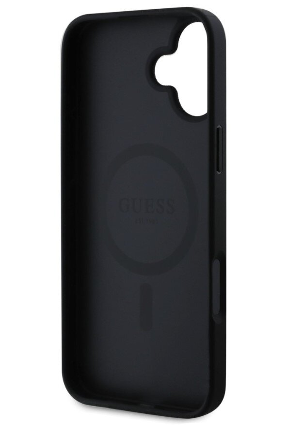 Guess PU Leather 4G Colored Ring MagSafe Zadní Kryt pro iPhone 16 – černá