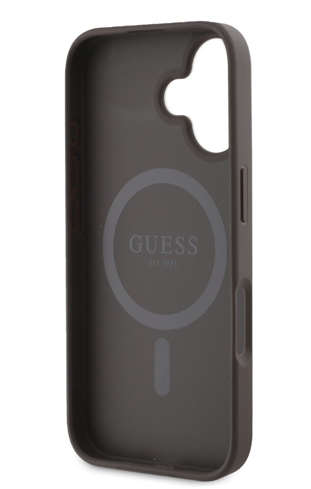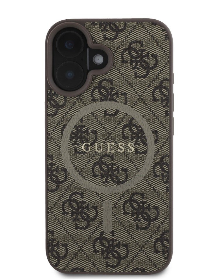 Guess PU Leather 4G Colored Ring MagSafe Zadní Kryt pro iPhone 16 Plus Brown