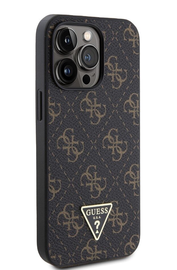 Guess PU Leather 4G Triangle Metal Logo Zadní Kryt pro iPhone 13 Pro Black