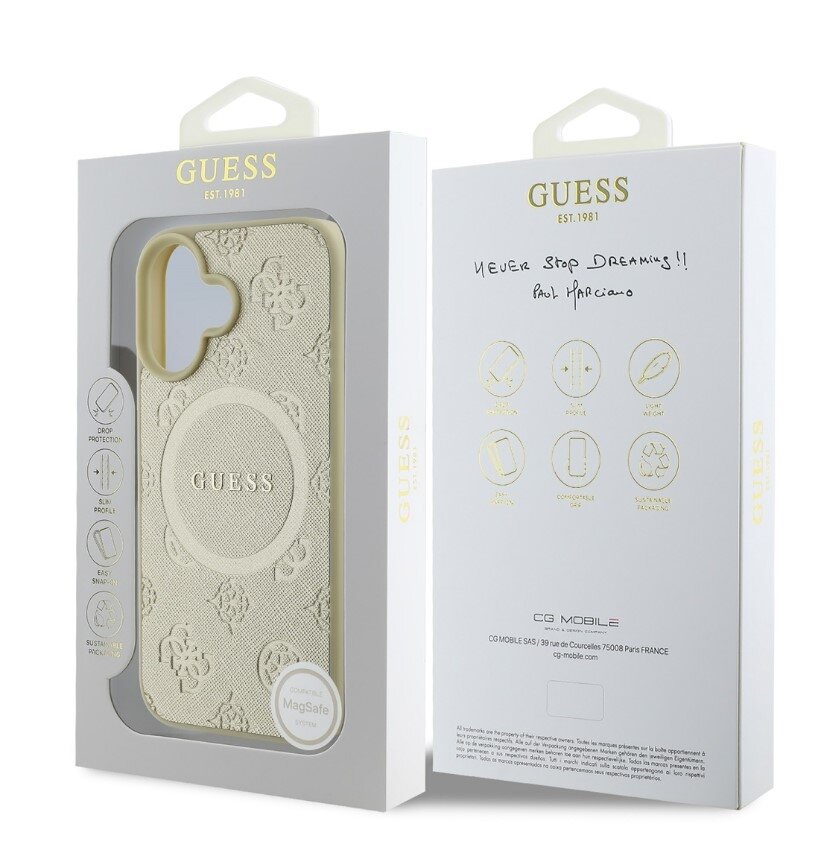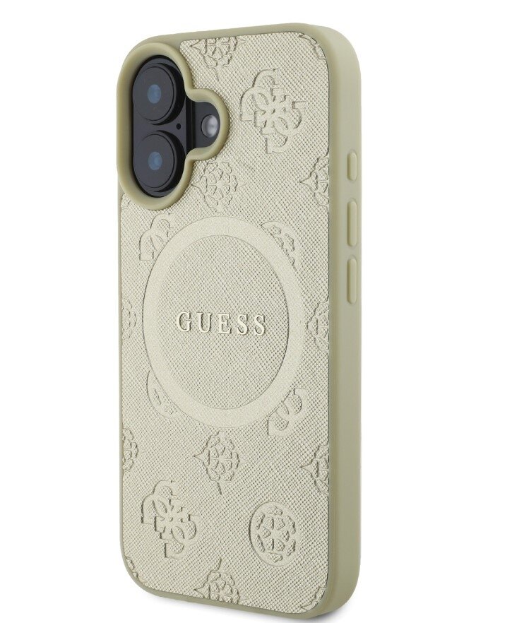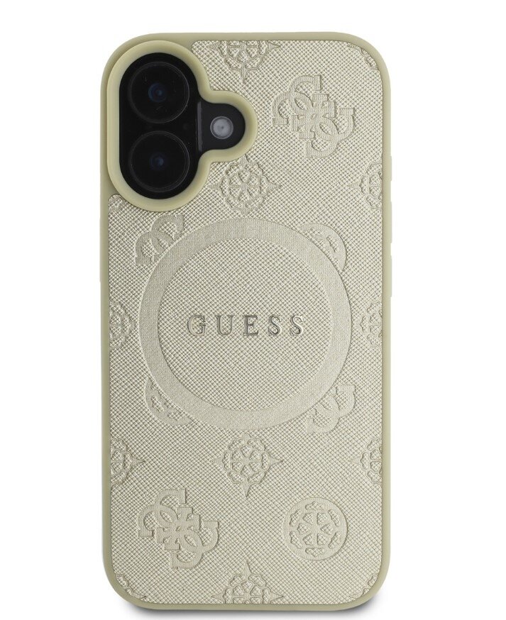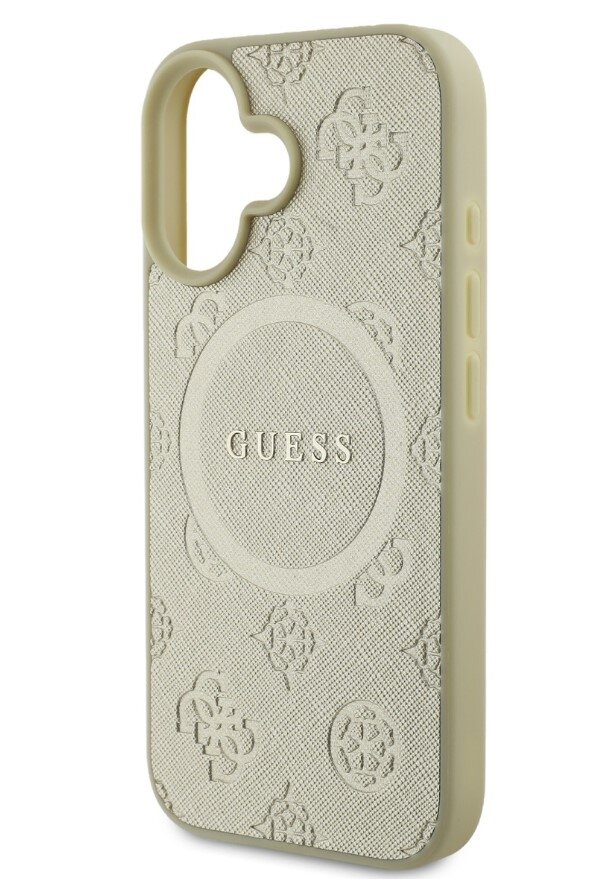 Guess Saffiano Peony Stamp MagSafe Zadní Kryt pro iPhone 16 Gold