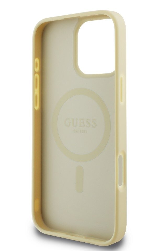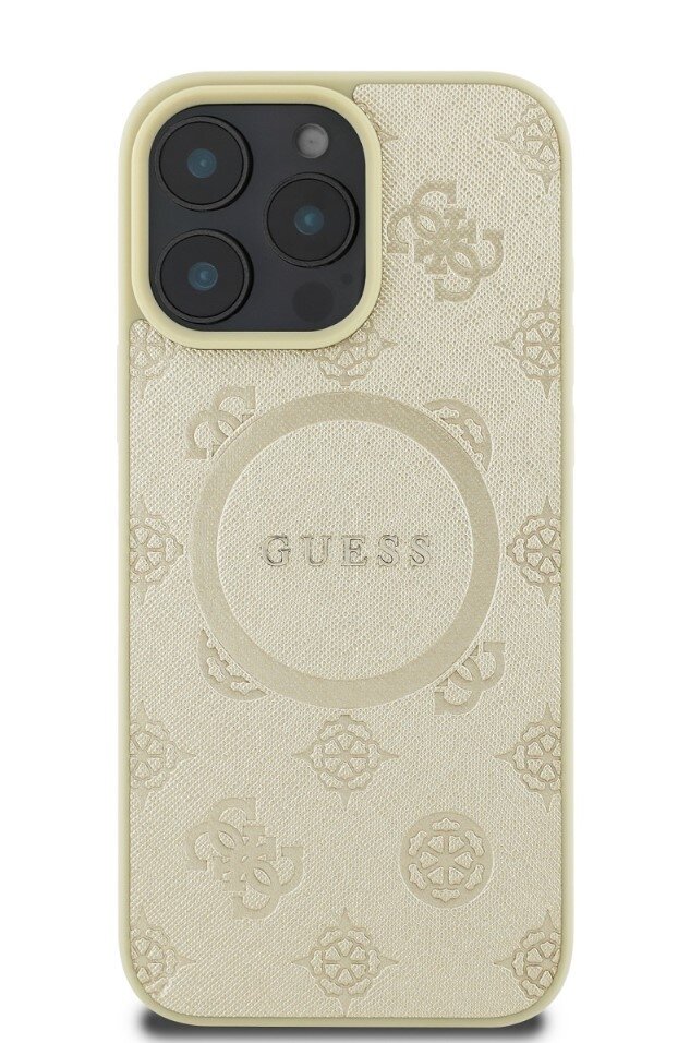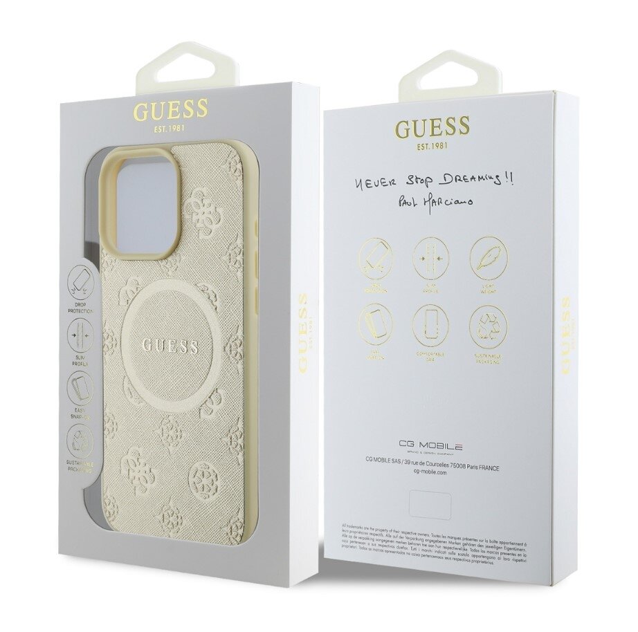 Guess Saffiano Peony Stamp MagSafe Zadní Kryt pro iPhone 16 Pro Gold