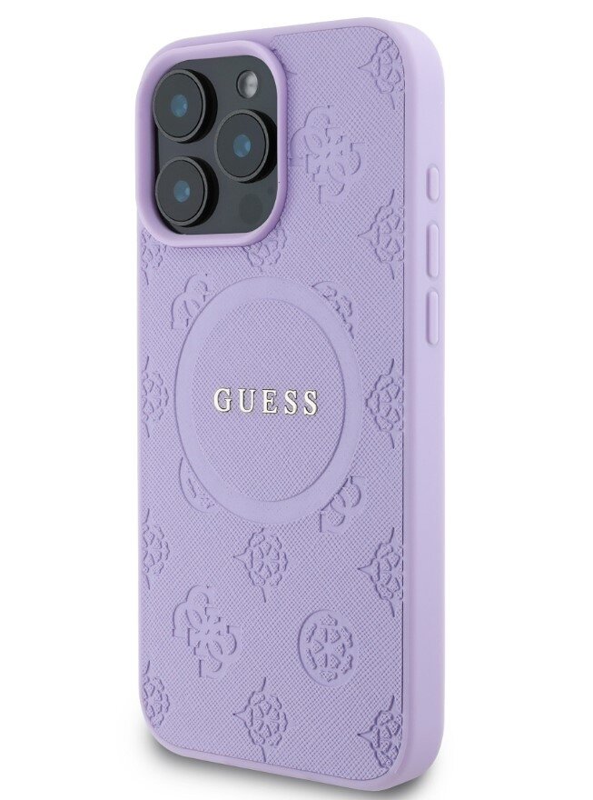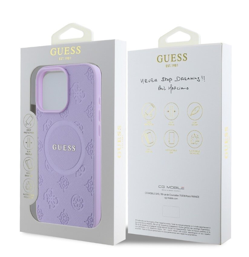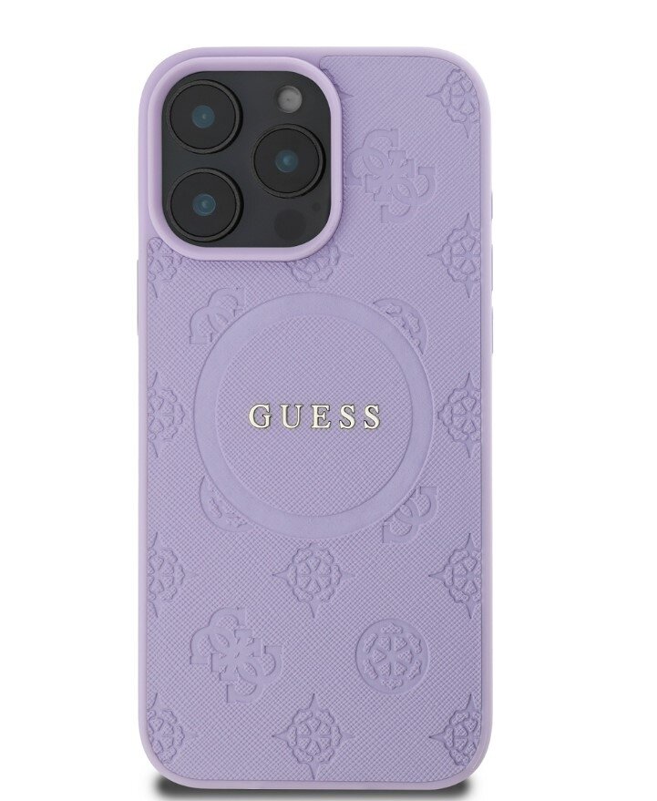 Guess Saffiano Peony Stamp MagSafe Zadní Kryt pro iPhone 16 Pro Purple