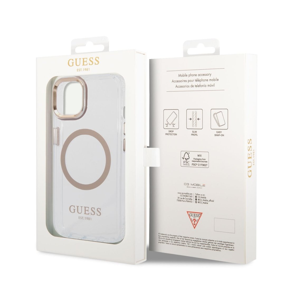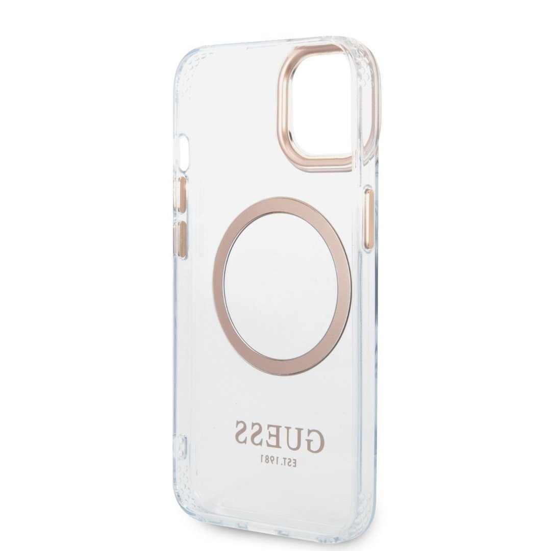 Guess Transparent MagSafe Zadní Kryt pro iPhone 14 Plus Gold