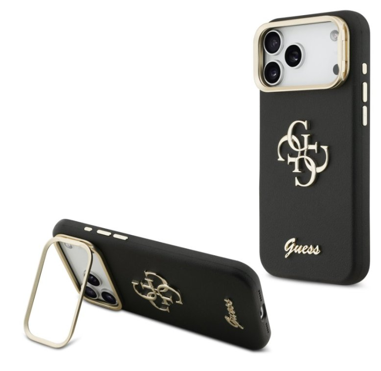 Guess zadní kryt pro iPhone 17 Pro Max, PU Grained 4G Logo Stand Camera Frame