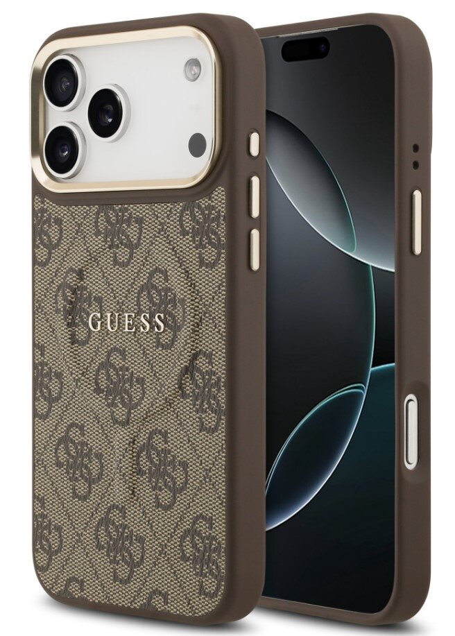 Guess zadní kryt pro iPhone 17 Pro Max, PU Kůže 4G Gold Frame MagSafe - hnědá