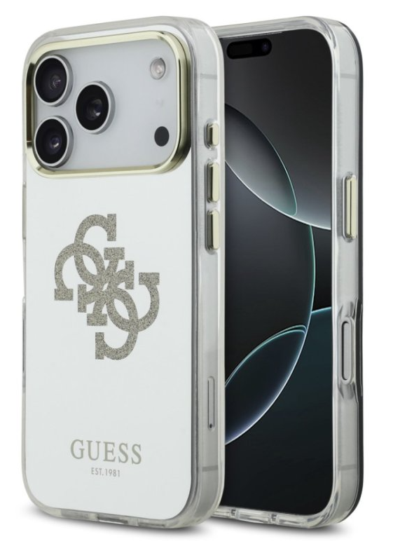 Guess zadní kryt pro iPhone 17 Pro, PC/TPU Mirror 4G Glitter Logo MagSafe - zlatá