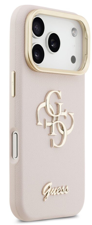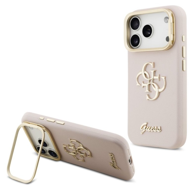 Guess zadní kryt pro iPhone 17 Pro, PU Grained 4G Logo Stand Camera Frame - růžová