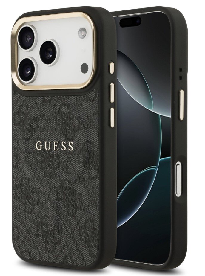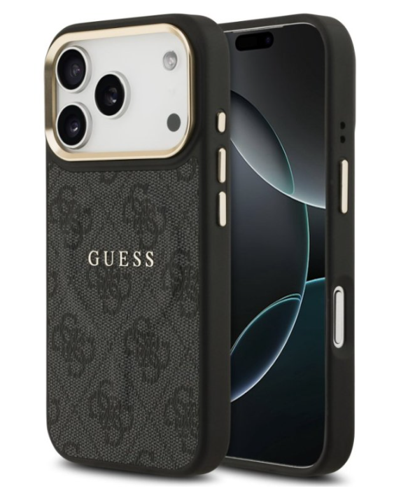 Elegantní kryt Guess (GUHMP17LP4MSEGCK) s potiskem 4G a zlatým rámečkem fotoaparátu nabízí stylovou ochranu i plnou kompatibilitu s MagSafe. PU kůže s protiskluzovým povrchem se příjemně drží a kryt perfektně padne na telefon. Luxusní doplněk pro každoden