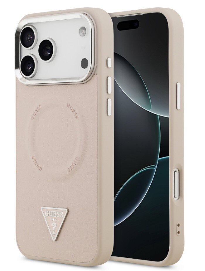 Guess zadní kryt pro iPhone 17 Pro, PU Kůže Triangle Logo MagSafe