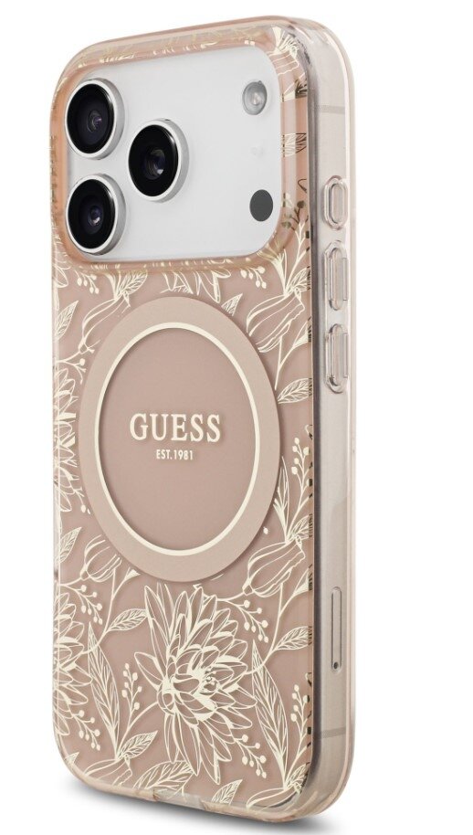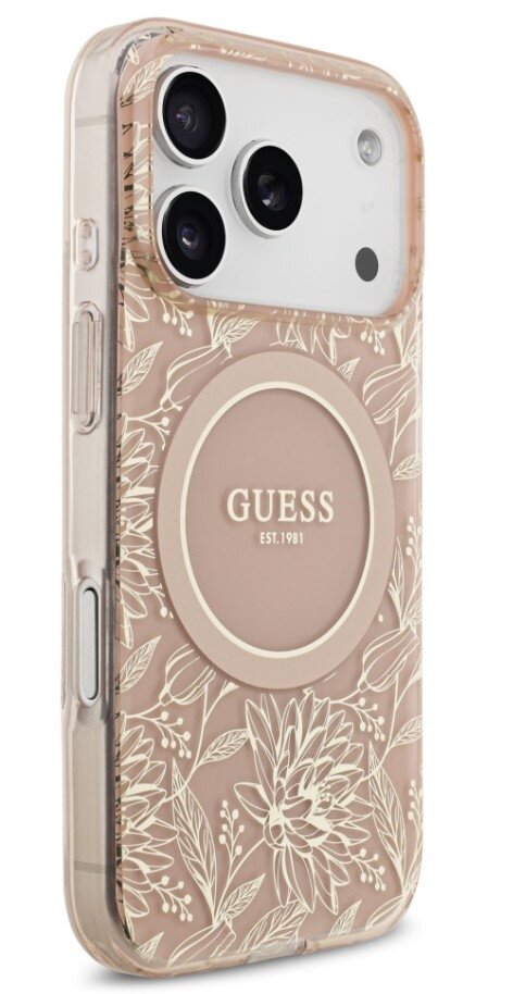 Guess zadní kryt s popruhem na ruku pro iPhone 17 Pro, IML Flowers MagSafe - růžová