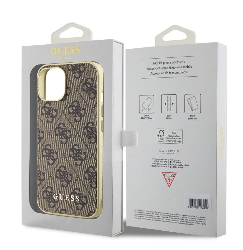 Prémiový zadní kryt Guess 4G Charm se vyznačuje elegantním, charakteristickým 4G vzorem, doplněným o zlaté logo GUESS. Kryt je vyrobený z lehkého a odolného polykarbonátu (PC) s povrchovou úpravou z PU kůže a nabízí tak nejen skvělou ochranu telefonu, ale také pohodlí při používání. Tato povrchová úprava zajišťuje pevný úchop, což minimalizuje riziko, že telefon vyklouzne z ruky.