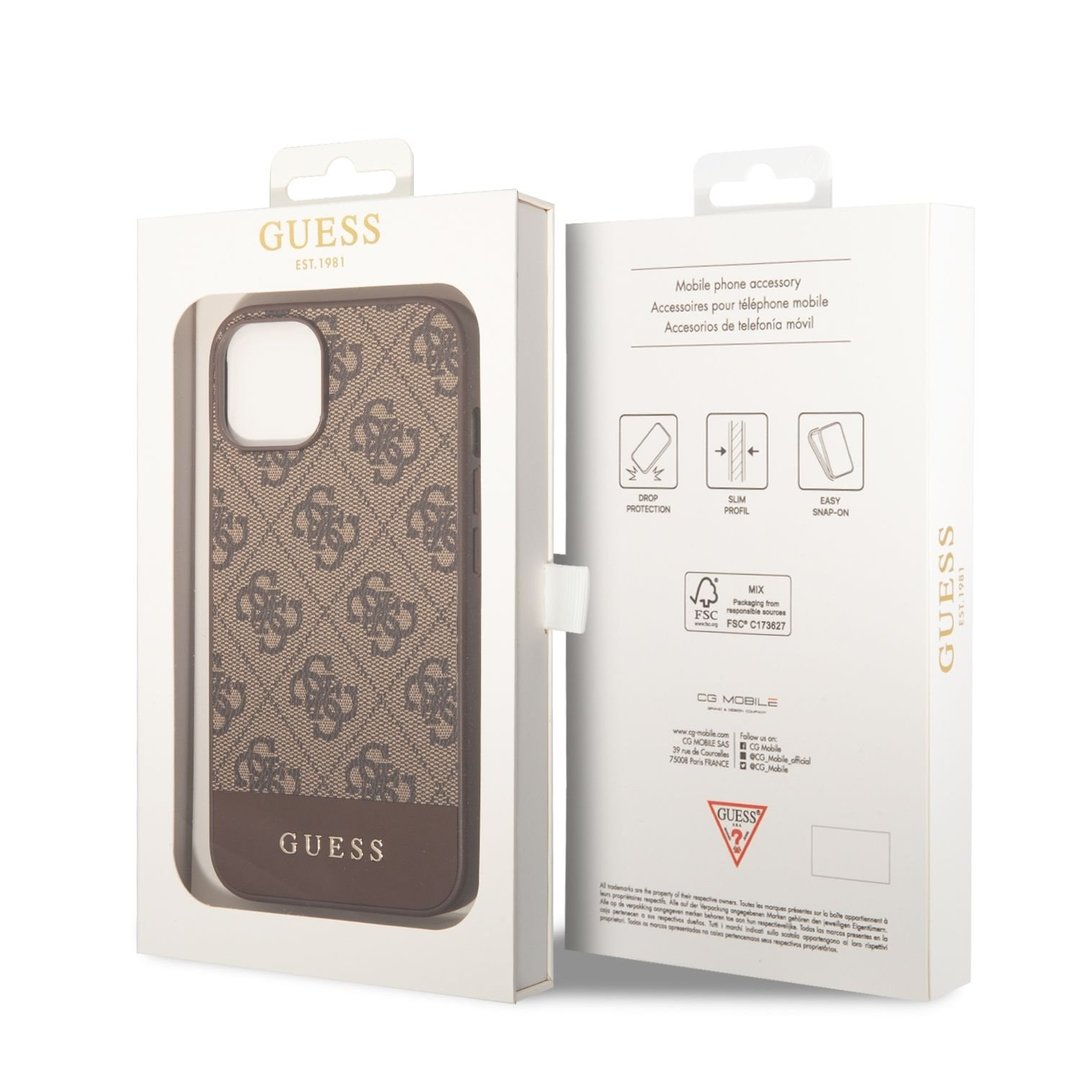 Guess 4G Stripe Zadní Kryt pro iPhone 14 Brown