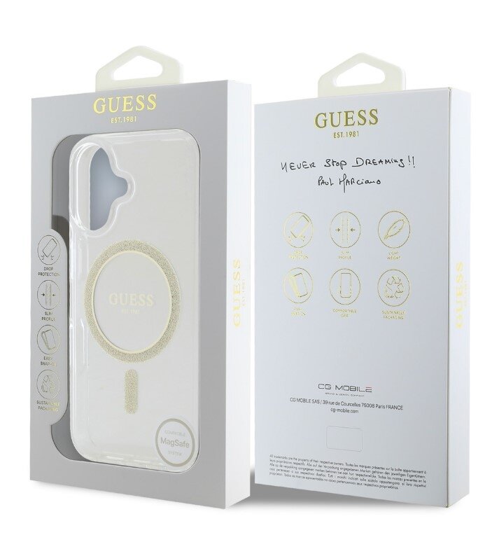 GuessIMLGlitterRingMagSafeZadníKrytproiPhone16PlusTransparent
